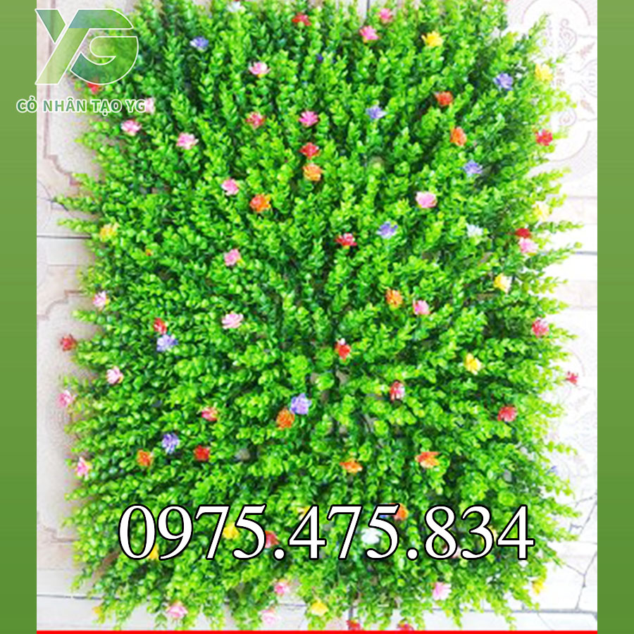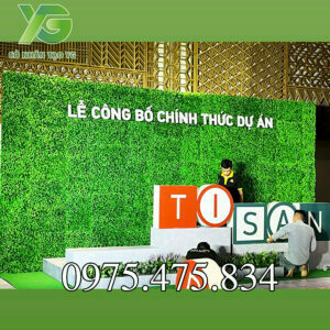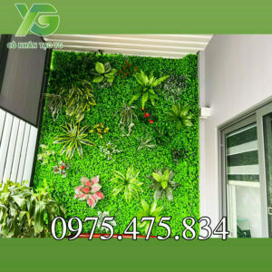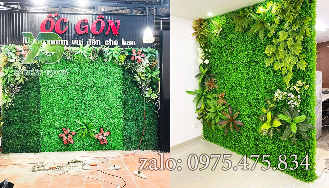 Tường cỏ, điểm cây lá nhựa trang trí kết hợp.